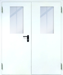 Двупольная противопожарная дверь EI-60 с широкими стеклопакетами и ручками «Антипаника», окрас по RAL 9003, арт. 1381 от «Фабрики стальных дверей» предназначена для защиты от пожара, а также распространения токсичных продуктов горения. Дверь прошла сертификационные испытания в в лаборатории и имеет сертификат, подтверждающий класс огнестойкости EI-60. Время эффективной защиты равняется одному часу.