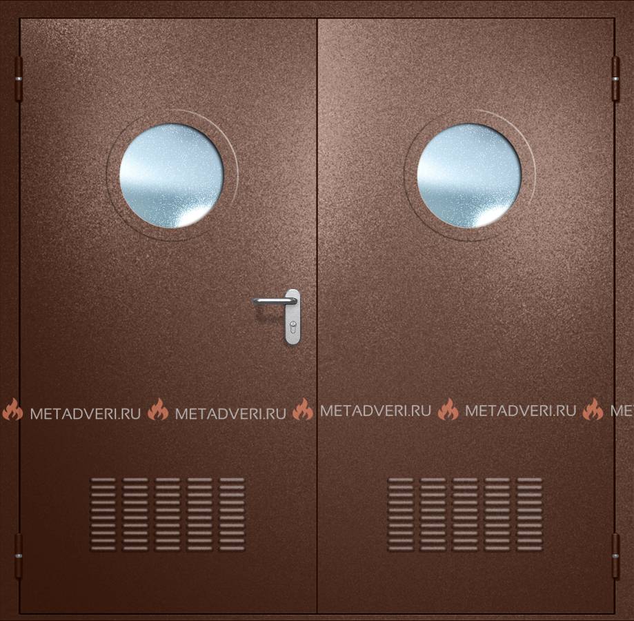 Двупольная противопожарная дверь EI-60 с вентиляцией и круглыми стеклопакетами, окрас по RAL 8016