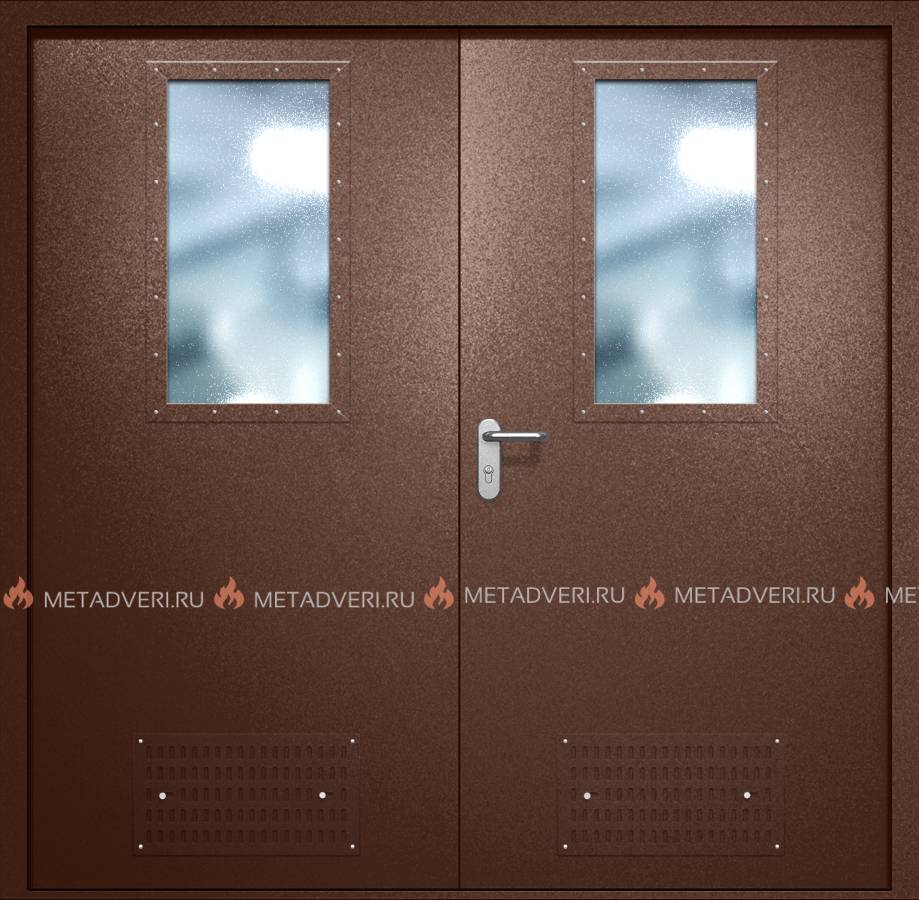 Двупольная противопожарная дверь EI-60 с вентиляцией и широкими стеклопакетами, окрас по RAL 8016