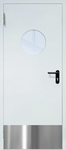 Однопольная противопожарная дверь EI-60 с круглым стеклопакетом и отбойником, окрас по RAL