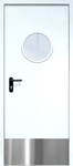 Однопольная противопожарная дверь EI-60 с круглым стеклопакетом и отбойником, окрас по RAL 9003