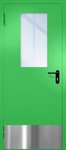 Однопольная противопожарная дверь EI-60 с широким стеклопакетом и отбойником, окрас по RAL 6037
