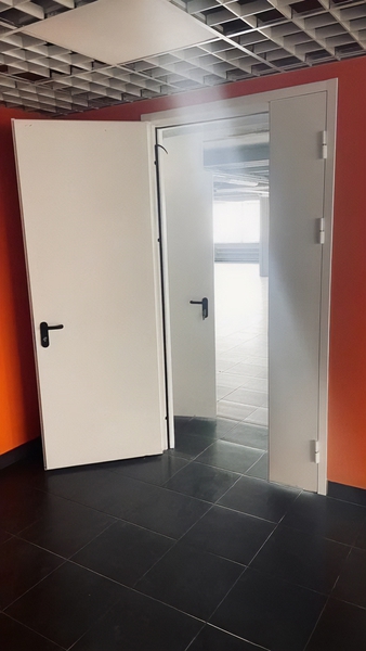Однопольная противопожарная дверь EI-60 с вентиляцией и ручкой «Антипаника», окрас по RAL 3003