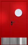 Полуторная противопожарная дверь EI-60 с круглым стеклопакетом и отбойником, окрас по RAL 3003