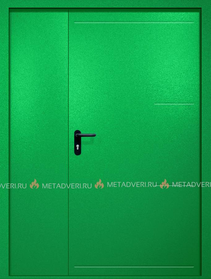 Полуторная противопожарная дверь EI-60 с рисунком на металле, окрас по RAL 6037, артикул 1731 от «Фабрики стальных дверей» защищает от пожара, а также распространения токсичных продуктов горения. Дверь прошла сертификационные испытания в специальных печах и имеет сертификат, подтверждающий класс огнестойкости EI-60. Время сохранения герметичности и теплоизоляции равняется одному часу.