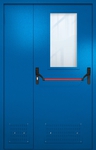Полуторная противопожарная дверь EI-60 с вентиляцией, широким стеклопакетом и ручкой «Антипаника», окрас по RAL 5002