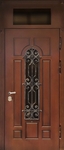 Стальная дверь МДФ с терморазрывом, с решеткой и остеклением во фрамуге