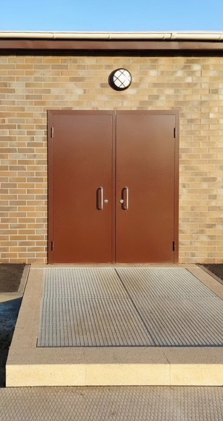 Двупольная техническая дверь с ручкой-скобой и кодовым замком, окрас по RAL 6037