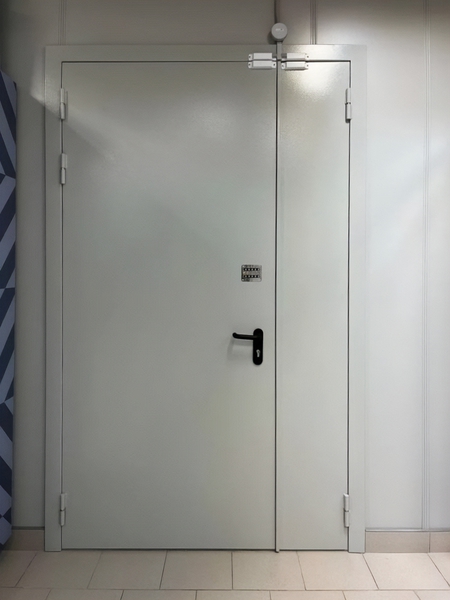 Двупольная техническая дверь с ручкой-скобой и кодовым замком, окрас по RAL 7001