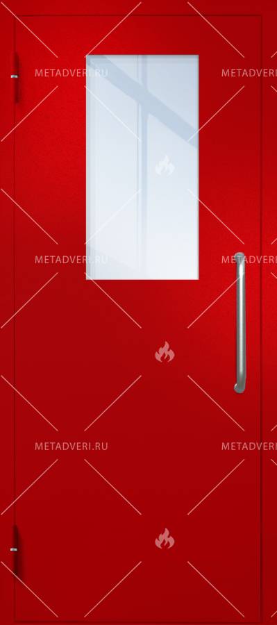 Однопольная техническая дверь с ручкой-скобой и широким стеклопакетом, окрас по RAL 3003, арт. 1917 от «Фабрики стальных дверей» предназначена для служебных и промышленных помещений. Дверь имеет прочный каркас и сопровождается гарантией на эксплуатацию.